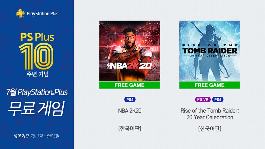 안녕하세요! PlayStation Plus가 2010년 6월 29일 세상에 처음 소개된 후 10년이 지났습니다. 지난 10년간 PS Plus를 서포트해주신 여러분들께 감사를 전하고 싶습니다. 지난 몇 년간 저희 PS Plus는 게이머들을 한데 모으고 회원분들께 흥미로운 콘텐츠 및 독점 할인을 제공하며 발전해왔습니다. 여러분들이 없었다면 지금의 저희는 없었을 것입니다. 여러분들께 감사의 뜻을 전하며, 다가오는 2020년 7월 PS Plus 무료 게임 라인업을 공개합니다.