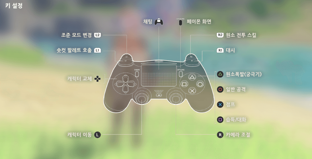 패드 조작에 있어 원신의 버튼 설정은 DUALSHOCK®4의 기능을 대량으로 사용하여 모든 여행자들이 보다 쉽게 탐험하고 전투할 수 있도록 했습니다.