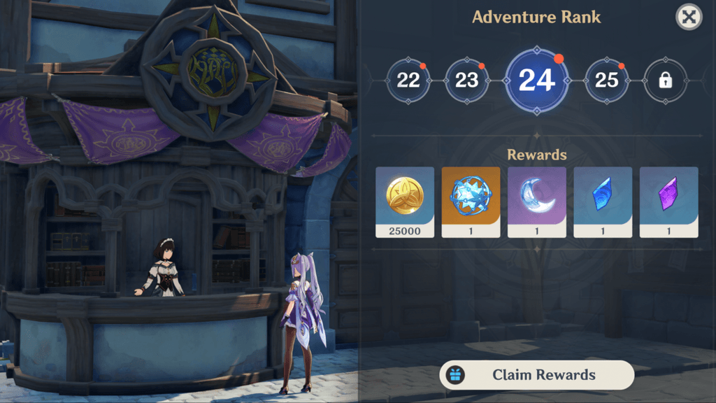 임무 완료, 보물 상자 열기, 일곱신상 활성화 시 여행자는 [모험 등급]이 오른 걸 확인하실 수 있습니다. 여행자의 모험 등급이 높을수록 더 많은 임무, 더 많은 지역을 탐험할 수 있습니다. 그리고 모험가 길드가 주는 특별한 보상도 받으실 수 있습니다.