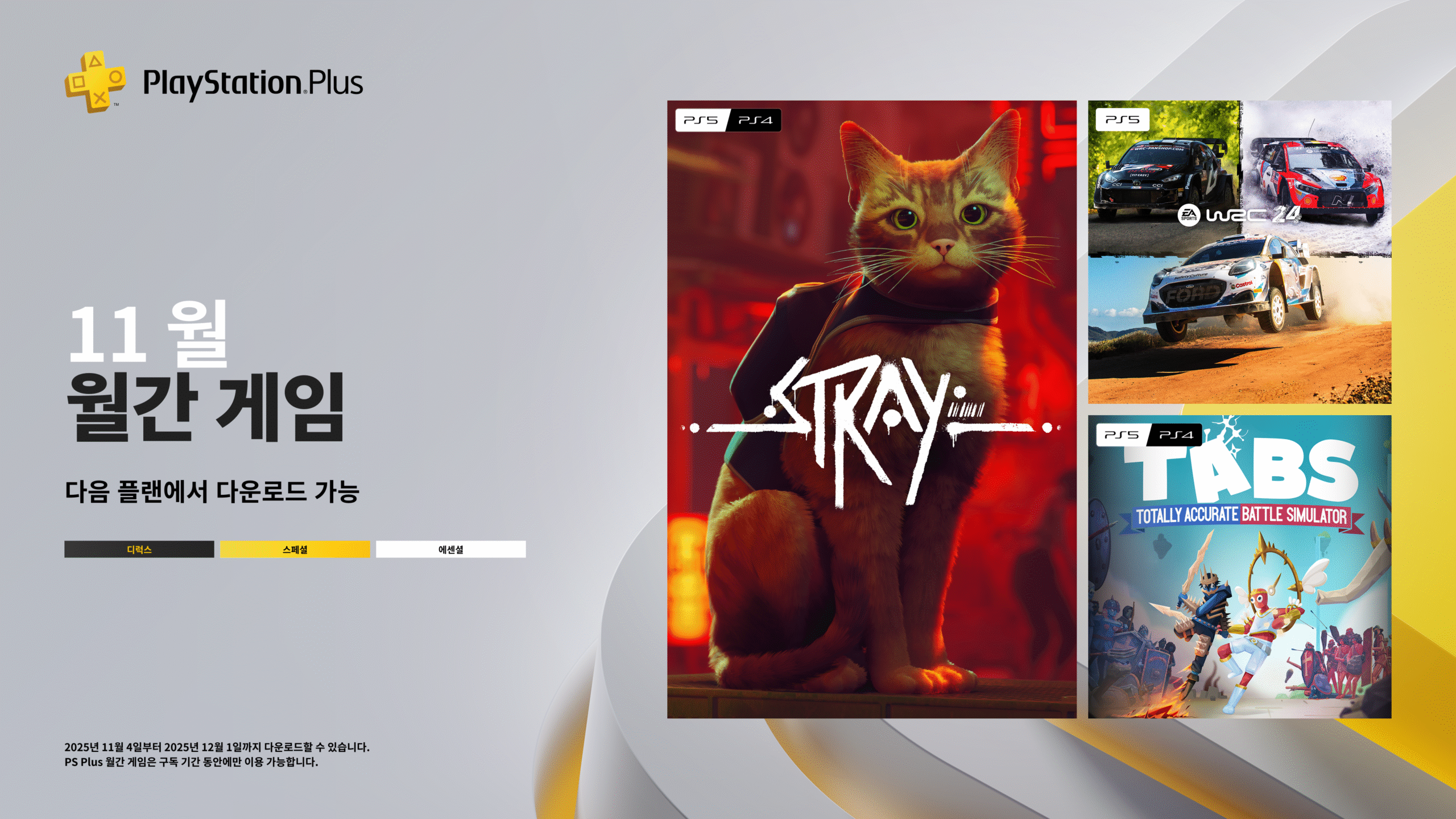 PlayStation Plus 멤버는 12월 1일 월요일까지 Stray, EA Sports WRC 24, Totally Accurate Battle Simulator를 게임 라이브러리에 추가할 수 있습니다.