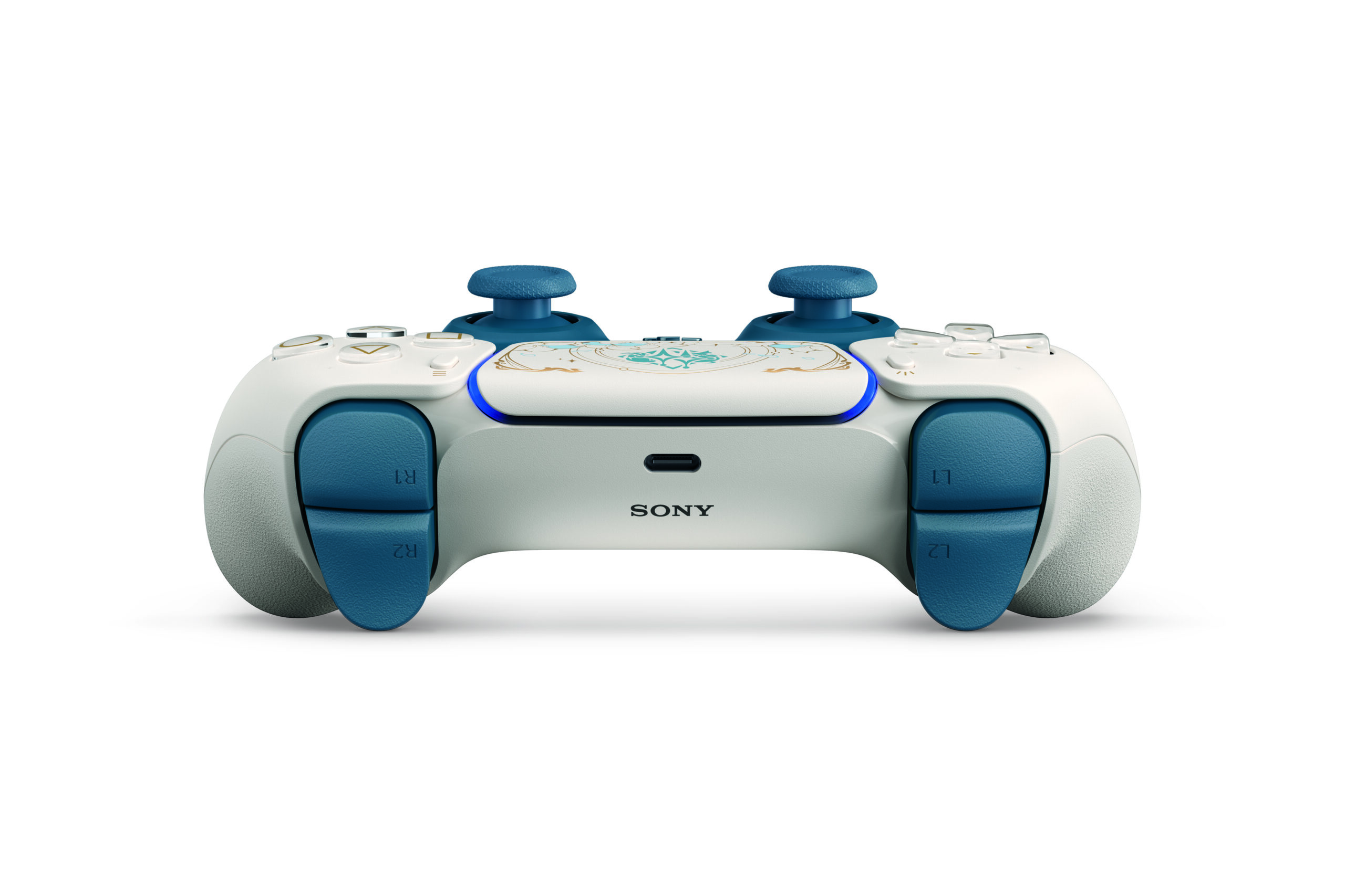 PlayStation 5 용 원신 ‘세 번째 달’ 버전 출시를 기념하는 DualSense 무선 컨트롤러 – 원신 한정판을 공개합니다! 새로운 컨트롤러는 이더리얼 화이트 색상을 기본으로 골드, 그린 색상이 조화를 이루며, 티바트 세계의 신비를 담은 상형문자와 쌍둥이 여행자 아이테르와 루미네, 그리고 그들의 가이드 페이몬을 상징하는 문양이 새겨져 있습니다.